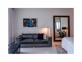 This 575 sq. foot Studio suite, has a private balcony where you can see the beautiful view of the Atlantic ocean as well as the City of Miami Beach. This suite is perfect for a couple. In the Living area there are 2 42" TV's, one is located in front of the bed and the second in the living area, The suite is also has a surround system, and an I-pod dock.